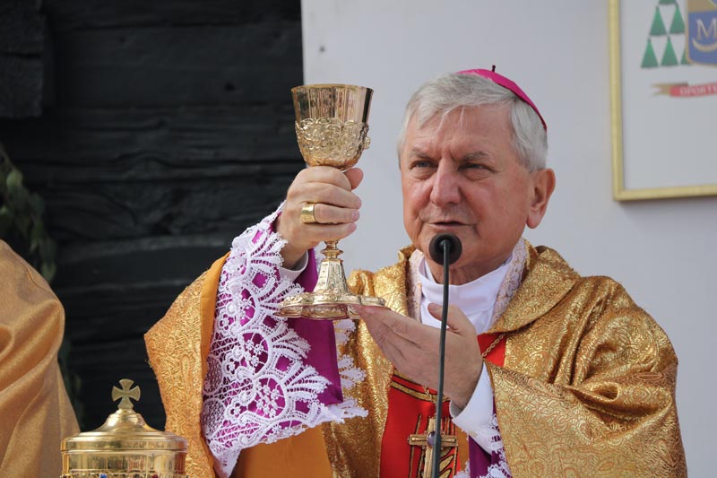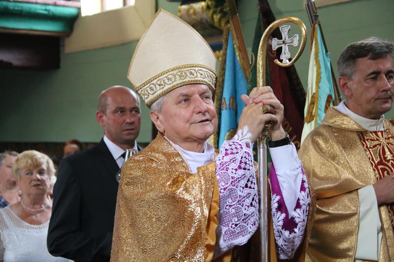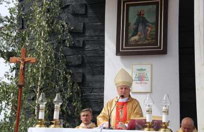 W homilii bp Edward wskazywał na św. Rocha jako człowieka wrażliwego na biedę ludzką. – Zapamiętajmy z tej dzisiejszej uroczystości, aby być wrażliwym na drugiego człowieka. Bardzo często łatwo jest ludzi dzielić, a jak trudno jest łączyć. Ważne jest, żebyśmy mieli tę wrażliwość w rodzinie, ale również wobec tych, których Pan Bóg stawia na naszej drodze życia – powiedział Celebrans. Akcentował, że droga do Pana Boga prowadzi przez człowieka. - Nie potrafimy pokazać inaczej, że Pana Boga kochamy jak poprzez miłość do ludzi. Jeśli ktoś gardzi człowiekiem to nie kocha Boga. Warto być dobrym człowiekiem, żeby nikt przez nas nie płakał, żebyśmy nikomu źle nie życzyli, żebyśmy idąc w tej pielgrzymce pomagali innym przez własne świadectwo wiary. Nie wstydźmy się krzyża Chrystusowego – przekonywał Kaznodzieja. Ubolewał, że z Europy napływa do nas tendencja walki z Kościołem. - Dzisiaj są grupy, które specjalnie nastawiają nas negatywnie do Kościoła, ale trzeba też widzieć pozytywne sprawy w naszej ojczyźnie, że mamy dobrego prezydenta, władze, których nie musimy się wstydzić, nie ma wojny, ludzie nie giną. W Europie jest ciągła walka z Kościołem i Bogiem i ta tendencja idzie do naszego kraju. Bądźmy mocni naszą wiarą – podkreślał Pasterz naszej diecezji.