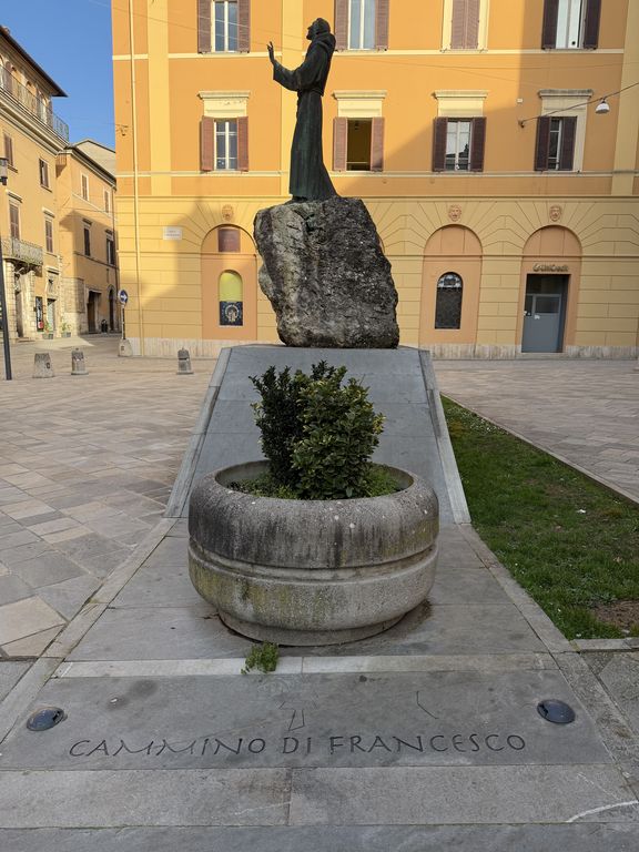 Katedrę mieli otworzyć o 16.00, ale czekałem pół godziny i się nie doczekałem (może jutro rano?), natomiast Kościół św. Franciszka jest w remoncie. Ale i tak było wspaniale powłóczyć się po Rieti, odwiedziłem inne kościoły, w tym św. Augustyna, a na placu przed Pałacem Papieskim jest piękny pomnik Franciszka z inkrustowanymi w posadzce jego słynnymi słowami: „Zacznij od tego co konieczne, potem zrób to co możliwe, a na koniec odkryjesz, że dokonałeś niemożliwego”. Z pewnymi perypetiami dotarłem do Kościoła św. Jana Bosko, gdzie pracują polscy księża, którzy zabrali mnie do siebie na kolację, nocleg i oczywiście wieczorne Polaków rozmowy – ależ mi ich brakowało! Dzień kończę z przekonaniem, że znowu – parafrazując piosenkę Kasi Kowalskiej – „wierzyć w nas, zaczynam wierzyć w nas”. Znaczy się w księży ;)