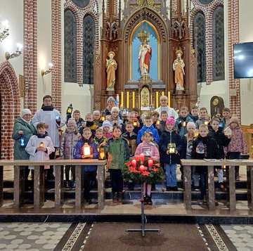 Przed Mszą św. wyświetlane były filmiki związane z postaciami świętych okresu adwentowego. Przy zgaszonych światłach w świątyni, nastrój oczekiwania podkreślały zapalone lampiony, z którymi dzieci, z pieśnią na ustach procesyjnie zbliżały się do ołtarza. Codziennie uczestnicy Mszy św. modlili za Leona XIV modlitwą z obrazka z jego wizerunkiem.