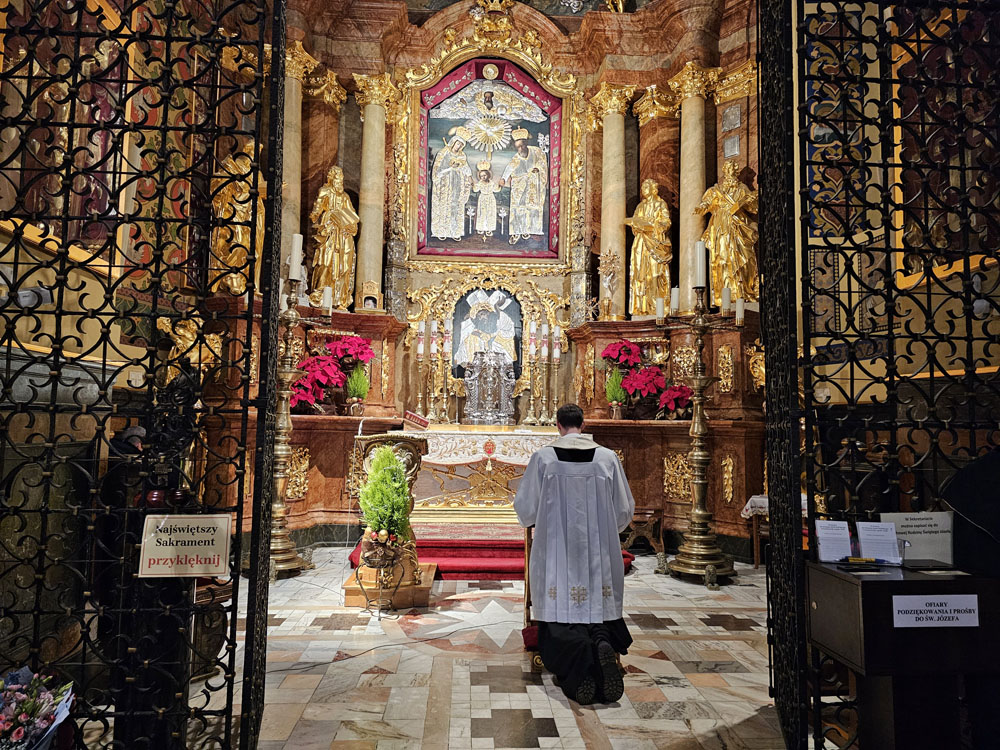 W dzisiejszym, rozpędzonym świecie, pełnym lęku i niepokoju Boża opatrzność daje nam wszystkim św. Józefa jako nieoceniony dar i skarb, jako wzór do naśladowania. Daje nam patrona i opiekuna na trudne czasy – zaznaczył ks. prałat Plota dodając, że w comiesięcznej modlitwie wspierają obecni w znaku swoich relikwii święci. Nabożeństwo w kaplicy cudownego obrazu Świętego Józefa poprowadził ks. Mateusz Kołodziejski wznosząc prośby do Boga za pośrednictwem przemożnego patrona św. Józefa, do którego z wielką ufnością uciekają się w swych troskach i potrzebach wierni z całego kraju.