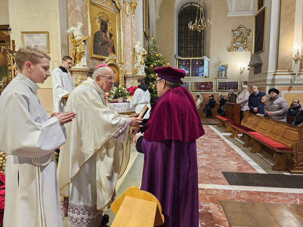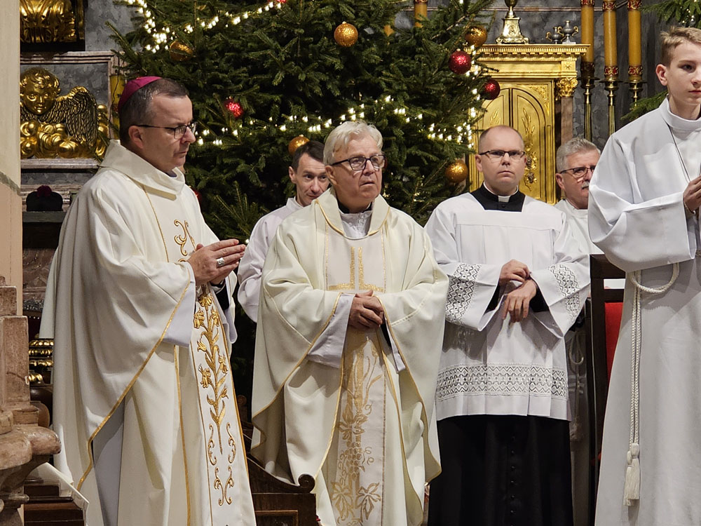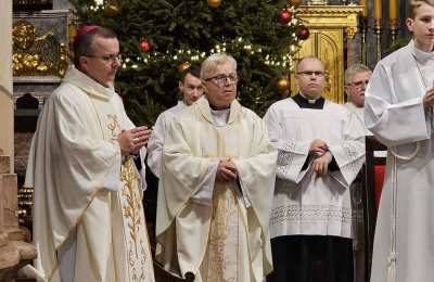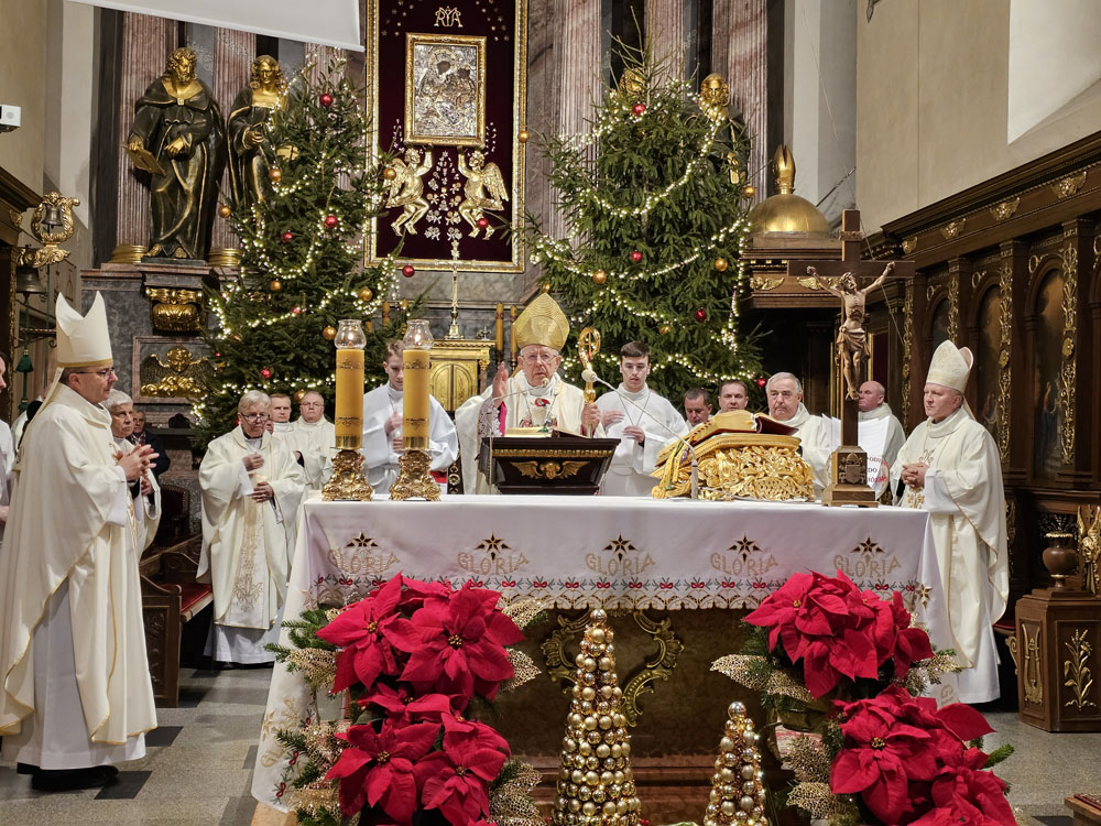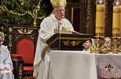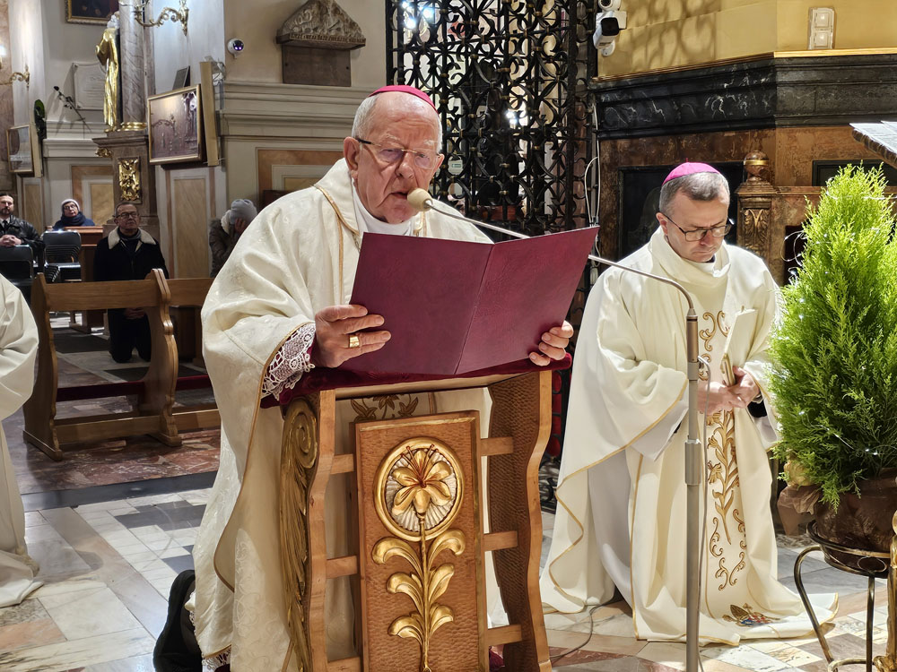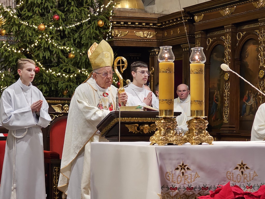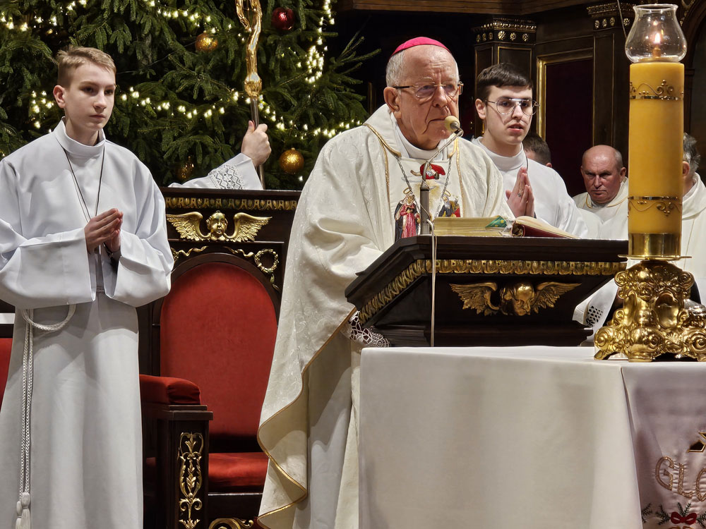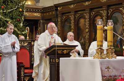 – Błogosławieństwo, ono przemienia i ewangelizuje. Przecież błogosławieństwo, a przede wszystkim błogosławieństwo w imię Boga jest zaczerpnięte ze Starego Testamentu. To Bóg, jak czytamy w Księdze Liczb, pouczył Mojżesza, aby błogosławił swój lud tymi słowami: „Niech cię Pan błogosławi i strzeże, niech Cię obdarzy swoją łaską” - akcentował biskup senior zachęcając wiernych, aby prosili Dzieciątko o błogosławieństwo. – Na progu nowego czasu prosimy o błogosławieństwo, prosimy o pokój. Niech ten nowy czas będzie pobłogosławiony, gdyż jest on darem Boga, który prosi nas, abyśmy czas uświęcali poprzez naszą pracę, świadectwo, a także radosną świadomość przynależności do Kościoła – zaznaczył bp Kujawski podkreślając, że wchodzimy w nowy rok w ciszy Betlejemskiej groty nie z fajerwerkami, ale w wierze i z odwagą Maryi, która uczy nas zawierzenia, uczy odpowiedzieć „tak". - To nie jest ucieczka od rzeczywistości lecz odwaga przyjęcia tego, czego Maryja do końca wtedy jeszcze nie rozumiała. Ale w niej, Słowo stało się Ciałem i zamieszkało między nami. Bo w wierze, nie wszystko musi być natychmiast jasne i klarowne – wskazywał kaznodzieja podkreślając, by dać się prowadzić Bogu, a Jego prawda nas wyzwoli.