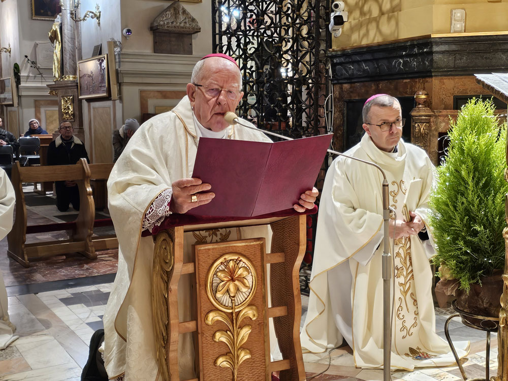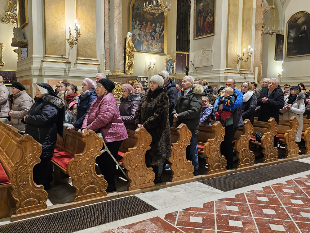 Temat styczniowego spotkania brzmiał: „Z Maryją i Józefem wkraczamy w Nowy Rok 2026”. Przed Mszą św. zgromadzonych na pierwszej w nowym roku modlitwie w intencji rodzin i obrony życia poczętego powitał ks. prałat Jacek Plota. Ks. kustosz przywitał także księży biskupów i kapłanów zgromadzonych wokół ołtarza. Szczególne pozdrowienia skierował do pierwszego biskupa diecezji kaliskiej bpa seniora Stanisława Napierały, życząc mu Bożego błogosławieństwa i zdrowia na każdy dzień nowego roku.