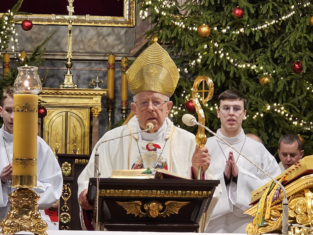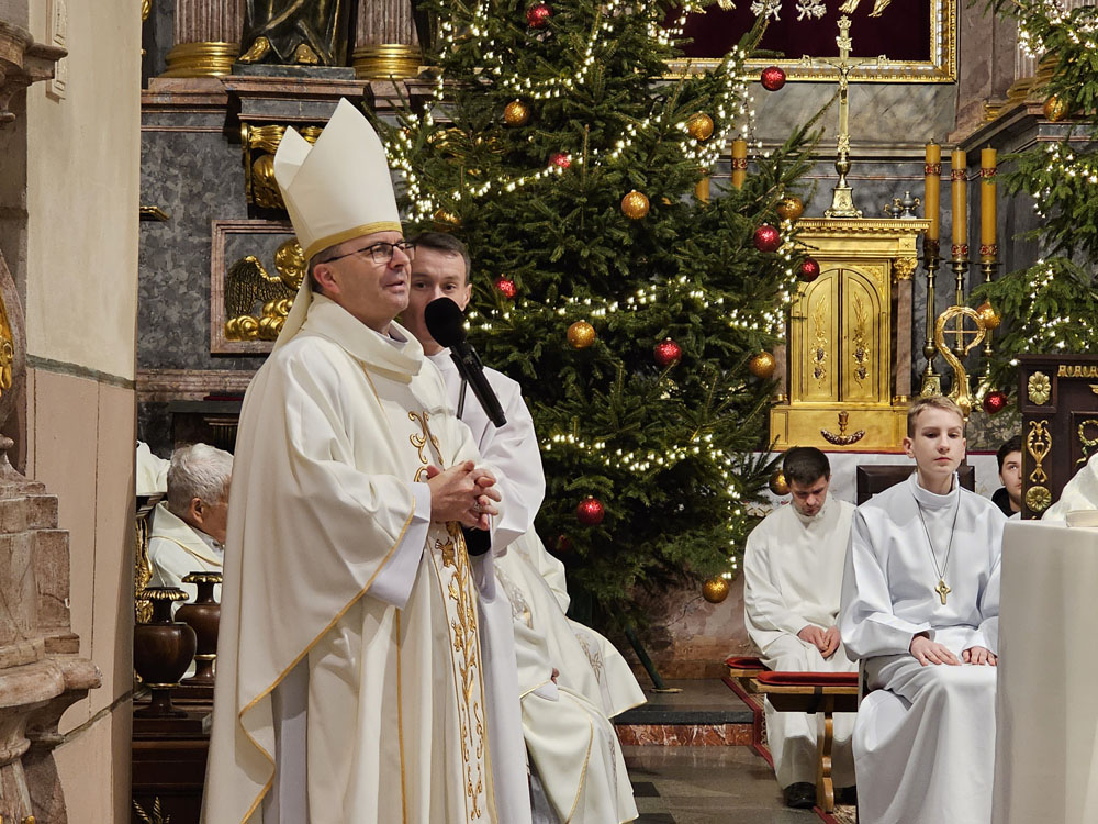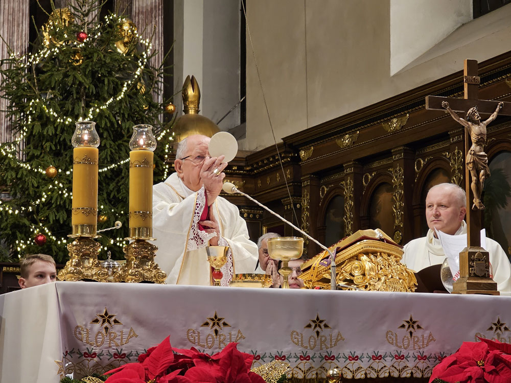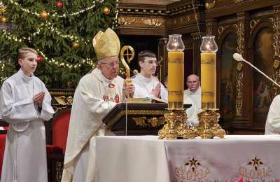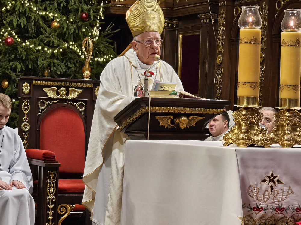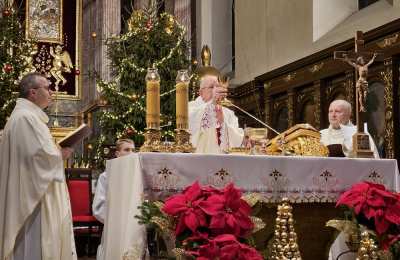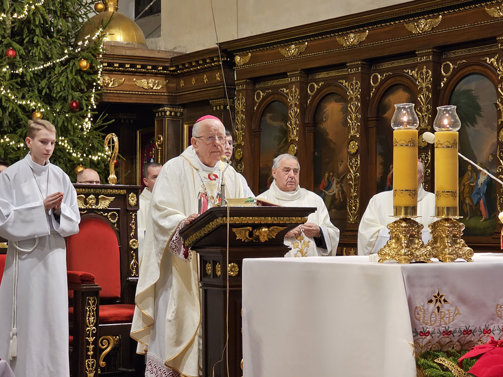 - Chciałbym razem z wami spojrzeć na Dzieciątko Betlejemskie i zaczerpnąć z tego źródła siły do ewangelizacji. Ewangelizacji zawsze nowej i aktualnej, także w obecnym świecie, ponieważ jej osią jest Jezus Chrystus, Pan czasów i pełnia miłości. Tenże Jezus obejmując nas swoją miłością uzdalnia nas do czynów i do pokornej odwagi świadectwa – wskazywał kaznodzieja podkreślając przy tym, że Dobra Nowina o Jezusie Chrystusie Zbawicielu jest zawsze aktualna i pełna treści, którą potrzebuje świat współczesny.