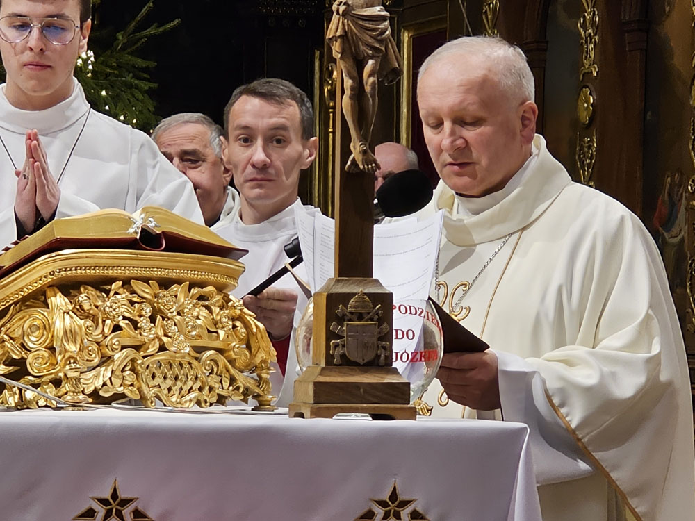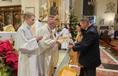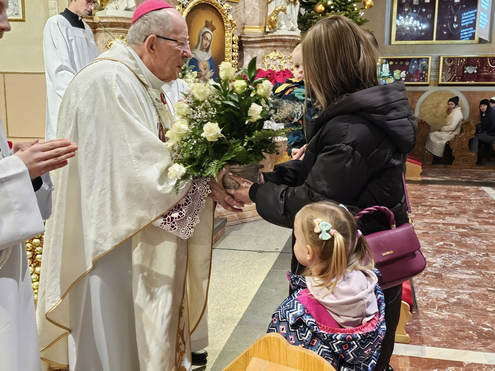 Dalej ks. biskup Kujawski wskazując na adhortację papieża Leona XIV Una fedeltà che genera (Wierność, która rodzi) skierowaną do kapłanów, zaznaczył, że ma ona bardzo ciekawe sformułowanie dotyczące ewangelizacji, czyli świadectwa o Jezusie prawdziwym Bogu i prawdziwym człowieku. – Papież mówi w niej, że opowiadanie innym o Jezusie, świadczenie o Nim swoim życiem, jest jednym z najwyższych aktów miłości – podkreślił biskup Kujawski akcentując, że w tym dzieleniu się Chrystusem, czyli Dobrą Nowiną, chodzi o to, abyśmy również sami się uświęcali, wówczas będzie ono autentyczne. Ksiądz biskup wskazał jeszcze na dwa sformułowania. Pierwszym z nich było: Ruch ad intra - ruch do wewnątrz, czyli kształtowanie sumienia i Ruch ad extra, czyli wychodzenie z tym do innych. – I właśnie to wychodzenie papież Leon XIV nazywa najważniejszą formą chrześcijańskiej miłości. Jest to prowadzenie siebie i innych do światła, którym jest Bóg i wyciąganie z ciemności, w której tak często nasz współczesny, nasz nowoczesny świat się gubi, bo nie poznał miłości Boga wszechmogącego, a co więcej przed tą miłością się broni – podkreślił kaznodzieja. Zaznaczył także, że każdy człowiek potrzebuje błogosławieństwa Bożego i zachęcał wiernych, by otworzyli serca, aby błogosławieństwo pełne miłości Dzieciątka Jezusa przeniknęło do głębi. Wspominając pewne zdarzenie z Brazylii zaakcentował, że ludzie tam bardzo często proszą księdza czy biskupa o błogosławieństwo, ale także sami mocą chrztu św. przekazują to błogosławieństwo innym.