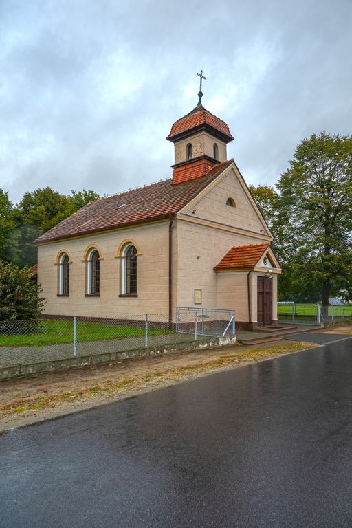 W maju 1948 r. poznański urząd likwidacyjny przekazał świątynię archidiecezji gnieźnieńskiej. Poświęcenie jej przez katolików nastąpiło 27 czerwca 1948 r. W 1953 r. dostosowano ją do potrzeb liturgii posoborowej. Świątynia jest budowlą murowaną, jednonawową. Do prezbiterium przylega zakrystia. Kościół kryty jest dwuspadowym dachem z wieżyczką. Z zewnątrz ściany budynku zdobi boniowanie. Okna zamknięte są półkoliście.