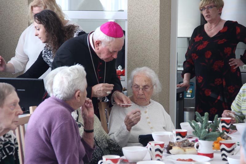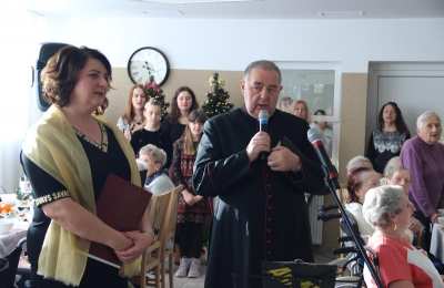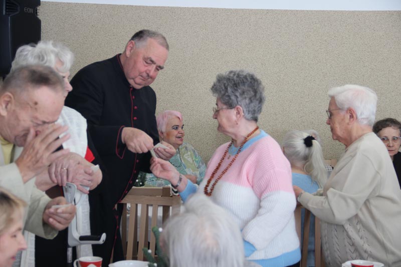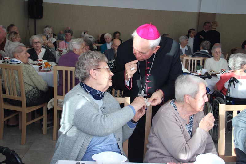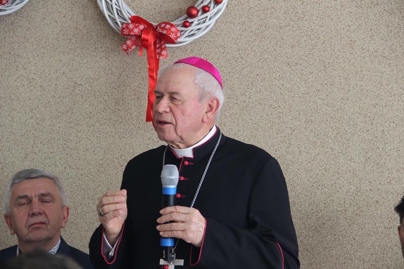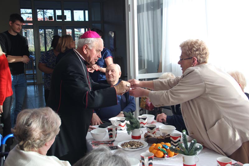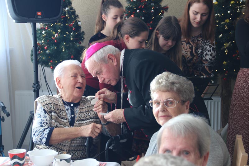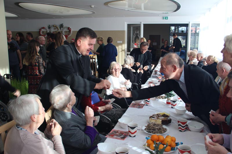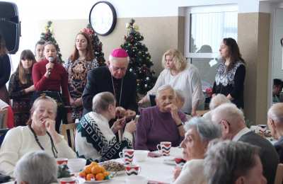W swoim przemówieniu Biskup kaliski senior podkreślał, że święta Bożego Narodzenia są świętami radości. - Bóg chce, żeby w nas była radość i On jest tym, który spełnia pragnienie radości. Tylko Bóg jest tym, który wyzwala nas ze słabości, tylko On odpuszcza człowiekowi grzechy i wtedy zło przestaje istnieć, a jego miejsce napełnia radość, którą jest Bóg - mówił bp Napierała. Życzył wszystkim Bożej radości. - Niech ta radość będzie w was siłą, która pozwoli wam przezwyciężać trudne chwile, zwłaszcza te, które oznaczają samotność. Pamiętaj, że nie jesteś sam, bo zawsze u drzwi twojego serca jest Jezus. Boże Narodzenie to jest szczególny czas, kiedy powinniśmy otworzyć swoje serce, pozwolić Panu wejść w nasze człowieczeństwo. Niech On narodzi się w nas. Niech to serce każdego z nas, nieraz już skołatane, stanie się żłóbkiem - powiedział Duchowny. Podziękował pracownikom Domu Pomocy Społecznej za codzienną troskę o mieszkańców. - Niech Pan Jezus da wam siły i moc, abyście na wszystkich waszych obszarach, gdzie posługujecie, nieśli ludziom dobro, bo w ten sposób będziecie sługami Najwyższego, który jest dobrem, prawdą, pięknem i radością - przekonywał Ks. Biskup.