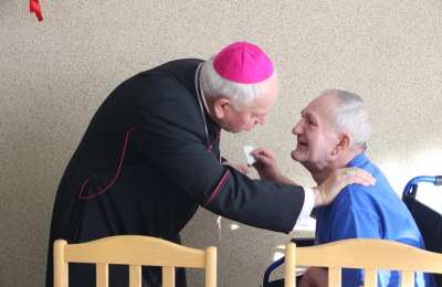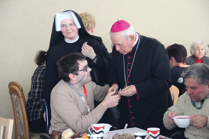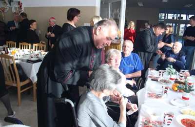 Bp Stanisław Napierała zasiadł 11 grudnia do wspólnej wieczerzy z mieszkańcami Domu Pomocy Społecznej w Kaliszu. Życzył wszystkim radości, której źródłem jest Jezus Chrystus.